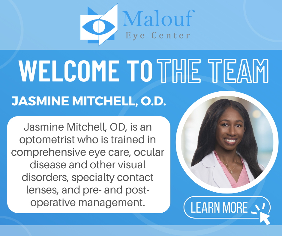 Dr. Jasmine Mitchell is an optometrist at Malouf Eye Center, who is trained in comprehensive eye care, ocular disease and other visual disorders, specialty contact lenses, and pre- and post-operative management. Dr. Mitchell is committed to providing high-quality patient care to individuals in need.